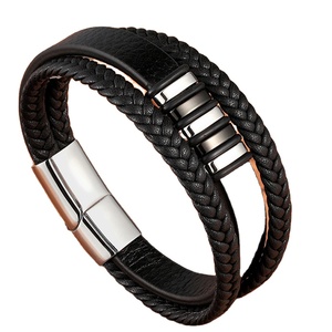 Mode Edelstahl Charm Magnetic Black Men Armband Leder Echte geflochtene Punk Rock Armreifen Schmuck Zubehör Freund